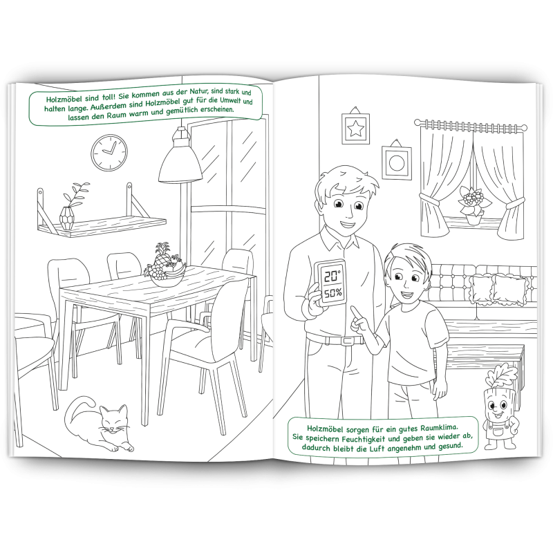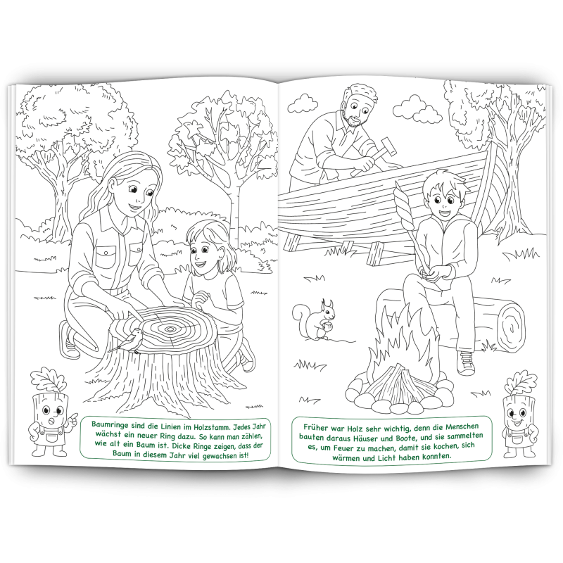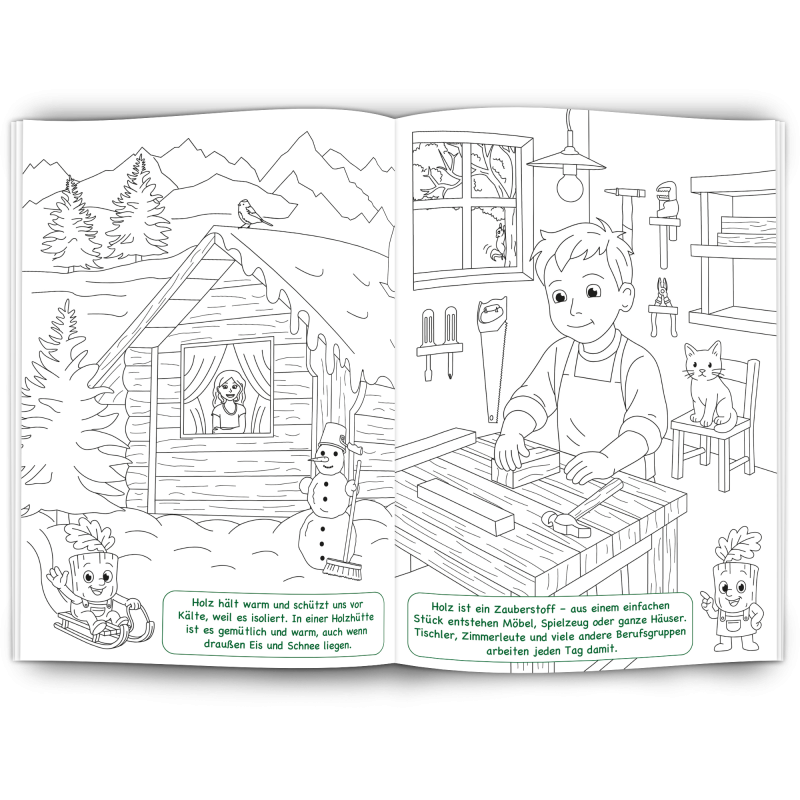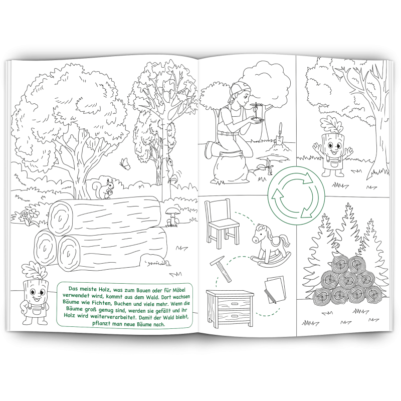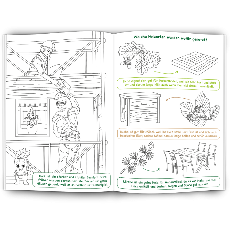 Unser Malbuch "Holz" ist ein edukativer, nachhaltiger Werbeartikel für Holzverarbeitende Betriebe, Möbelhersteller, Forstwirtschaft, Zimmerleute, Schreiner und alle die mit dem Werkstoff Holz arbeiten.