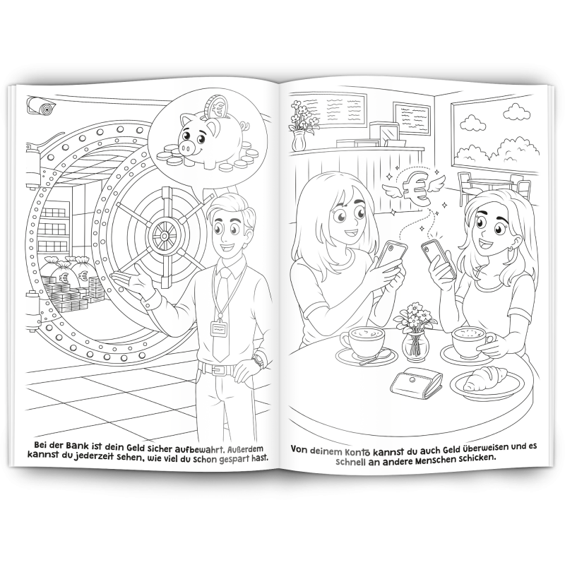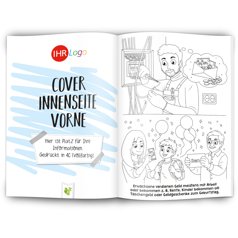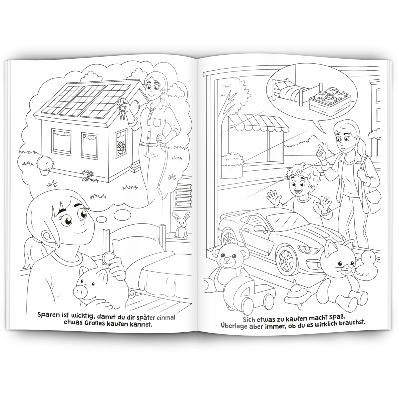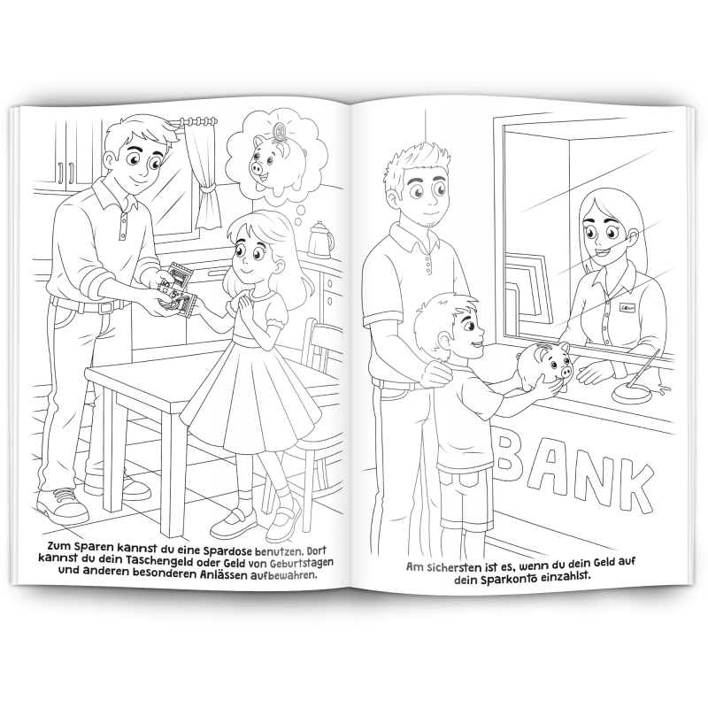 Unser Malbuch "SPAREN" ist ein toller Werbeartikel für Banken, Sparkassen, Finanzdienstleister, Bausparkassen und Kreditinstitute.