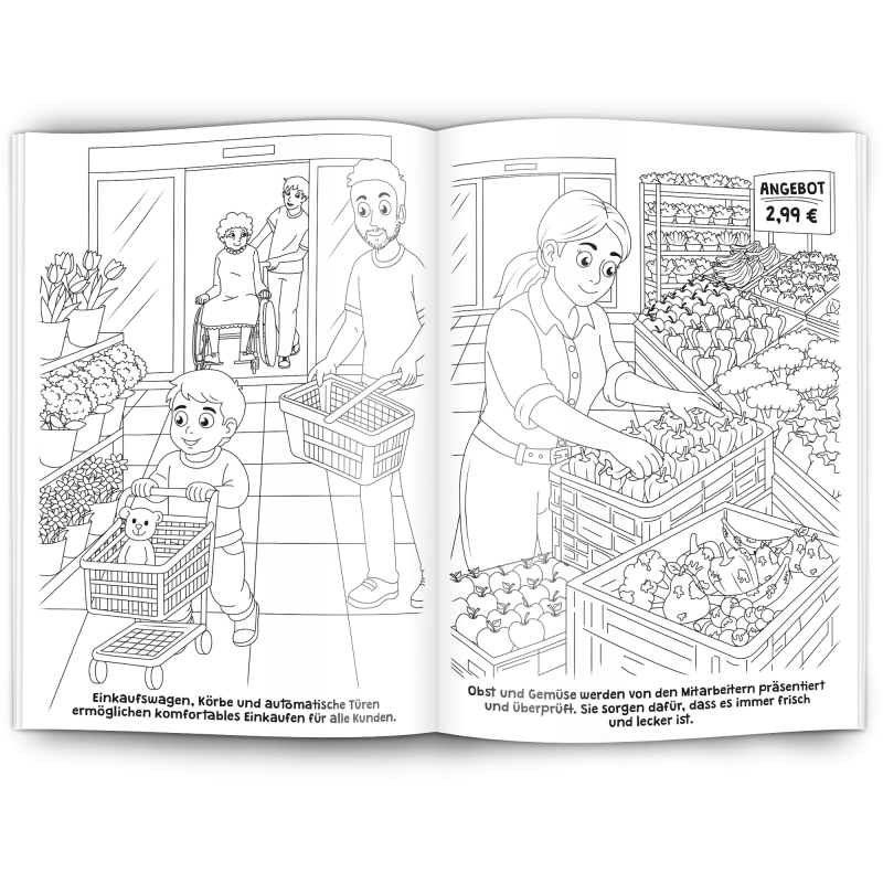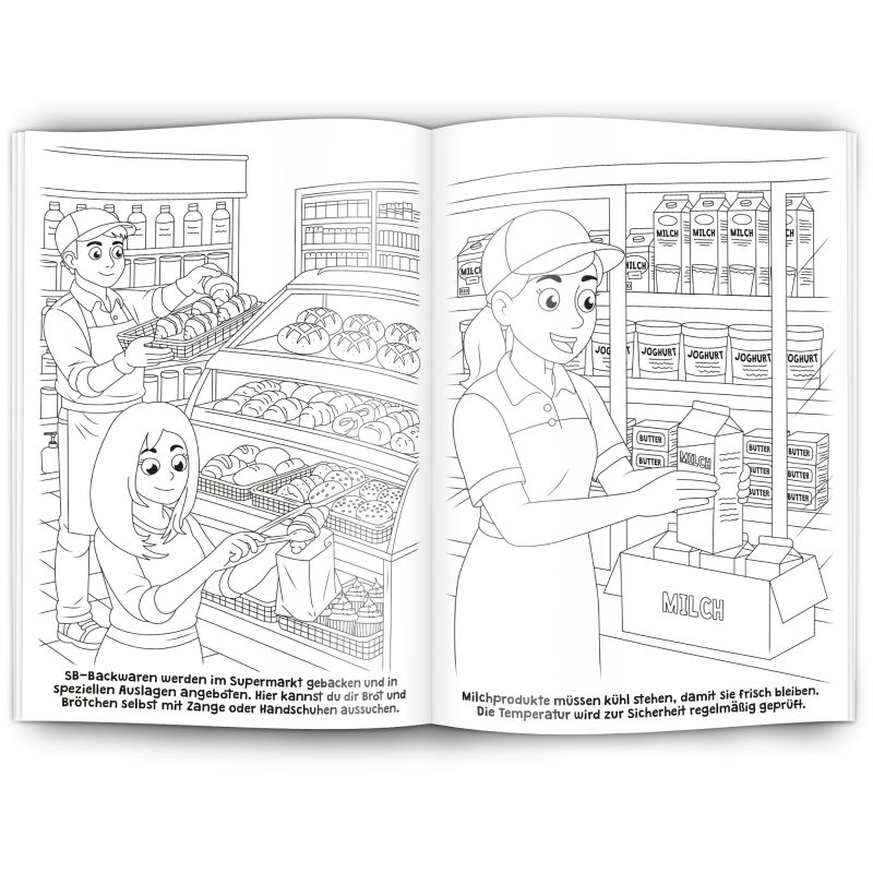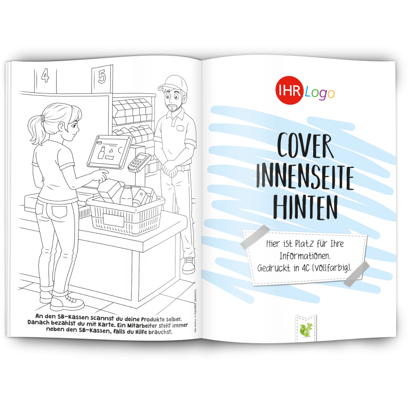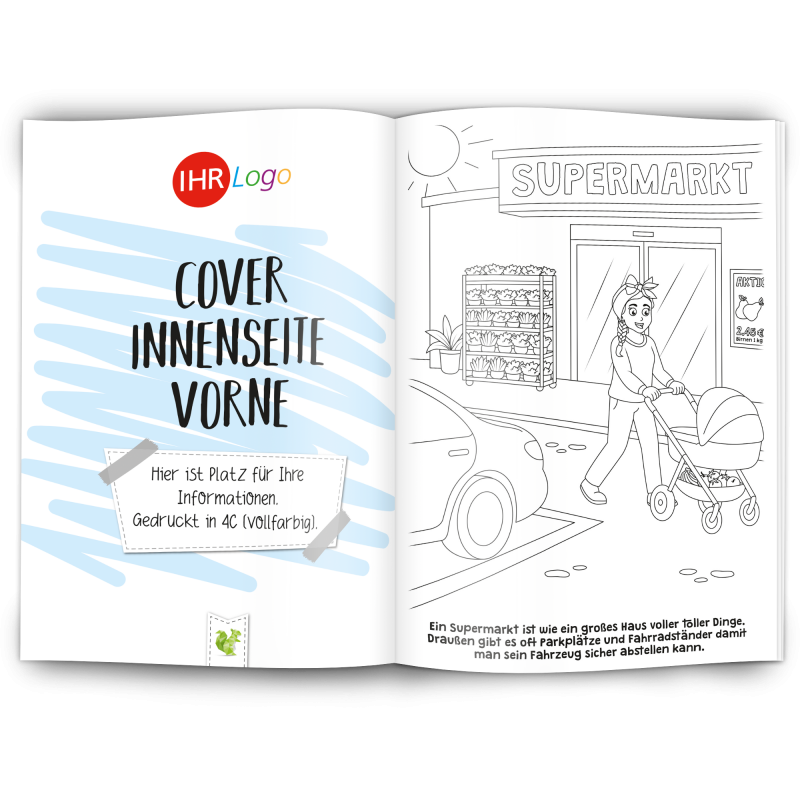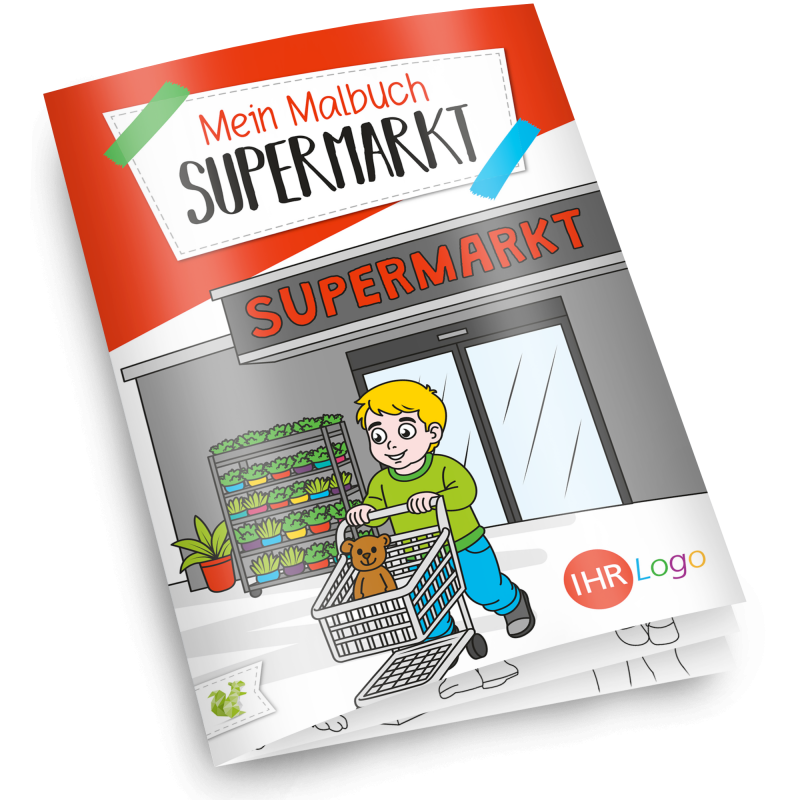 Unser Malbuch "SUPERMARKT" ist ein toller Werbeartikel für Supermärkte und Discounter.